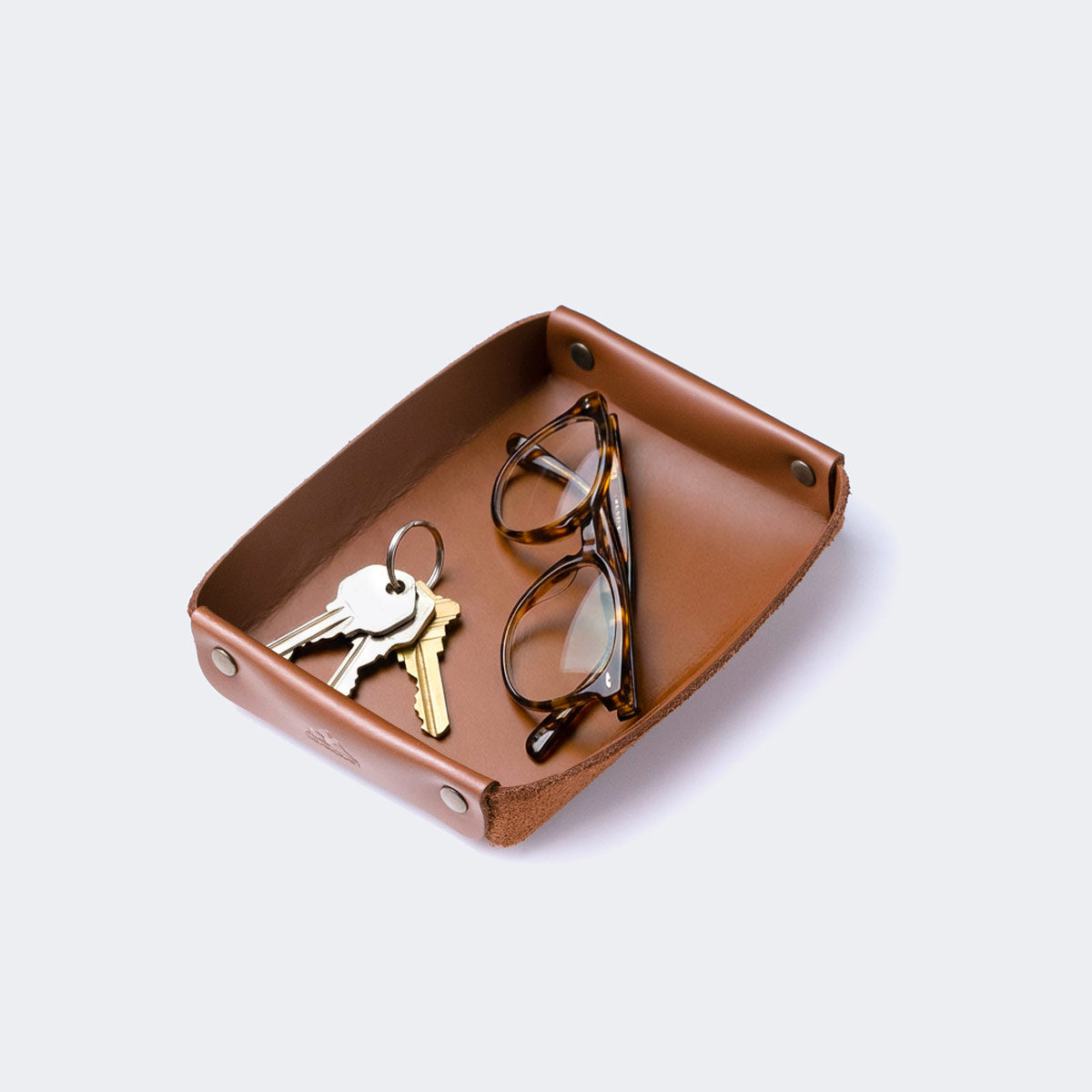 Minimalist bir tarza sahip deri tepsi modeli iki farklı boyutta tasarlandı.