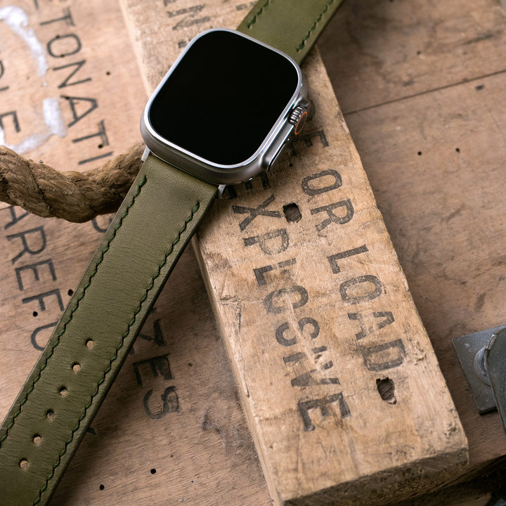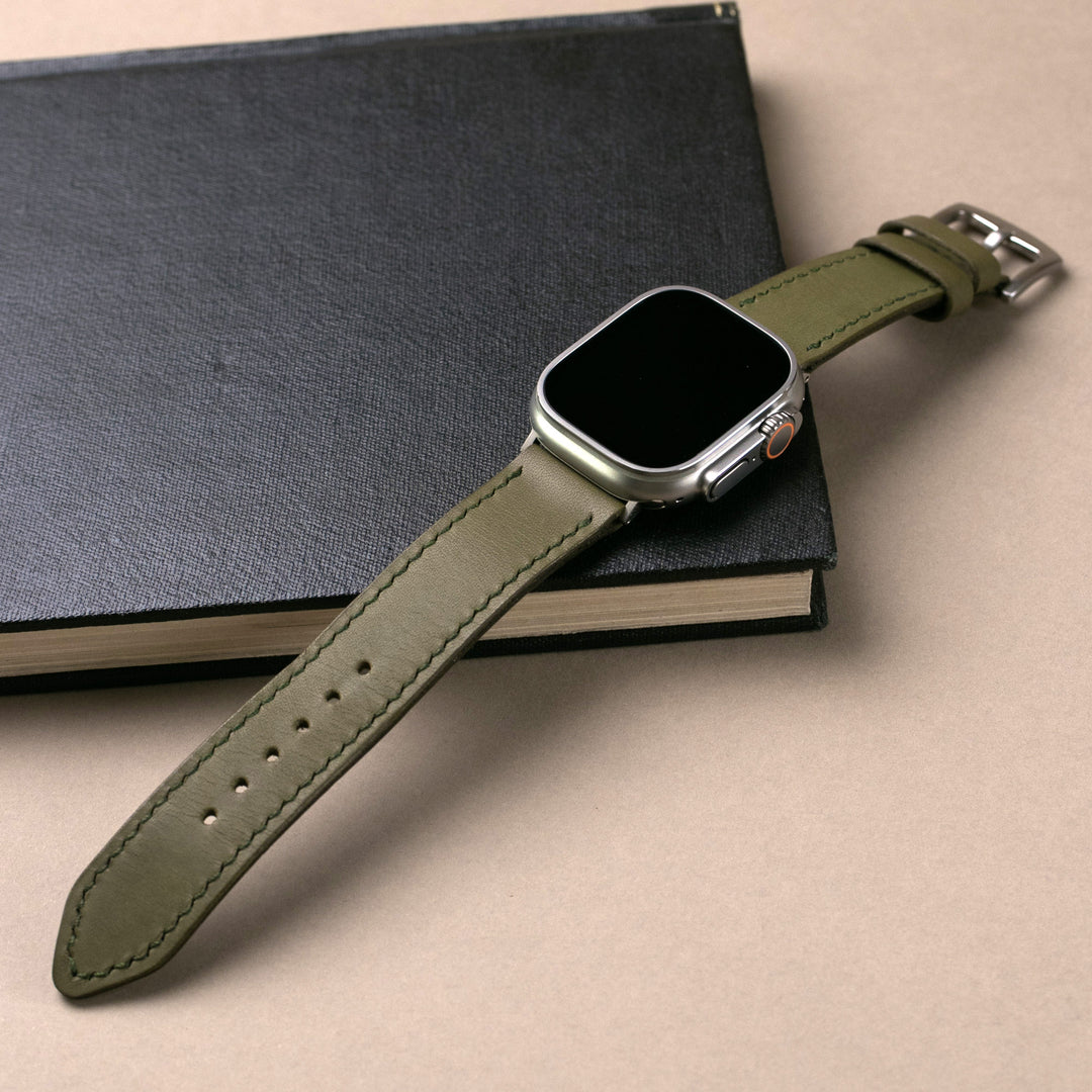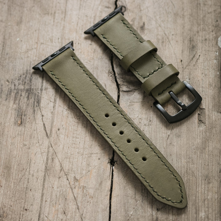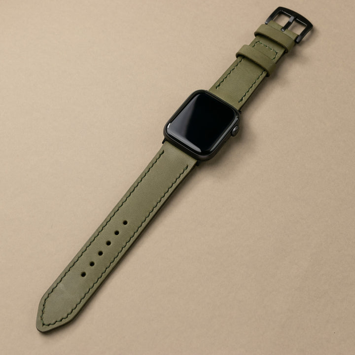 VegTan Çift Kat Deri Apple Watch Kayışı - Olive