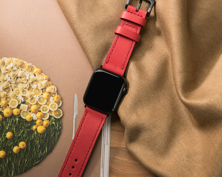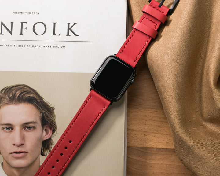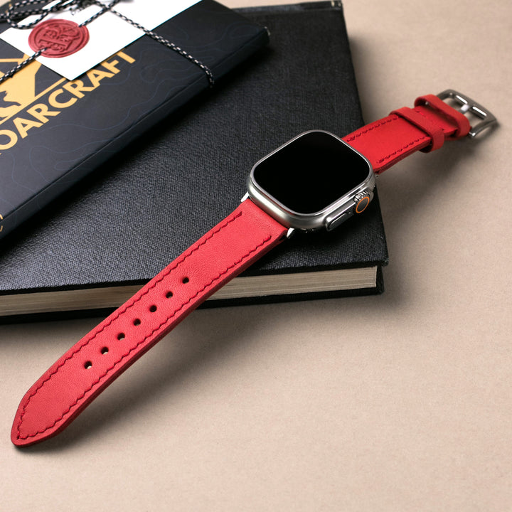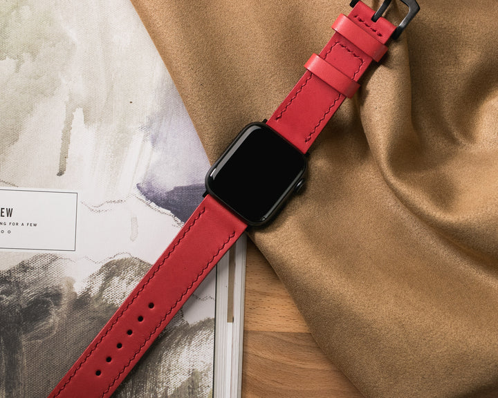 VegTan Çift Kat Deri Apple Watch Kayışı - Carmine
