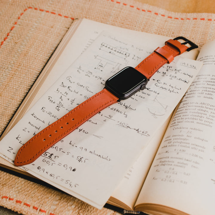 VegTan Deri Apple Watch Kayışı - Orange - Roarcraft TR