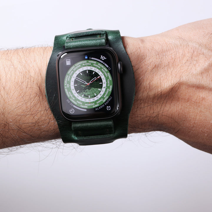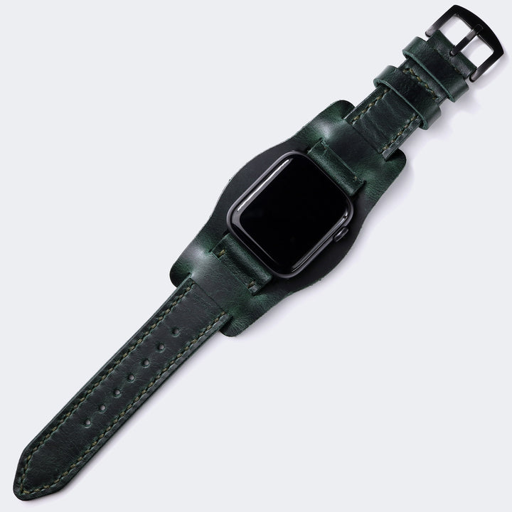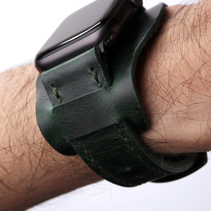 Bund Strap - Çift Kat Deri Apple Watch Kayışı - Orman Yeşili - Roarcraft TR