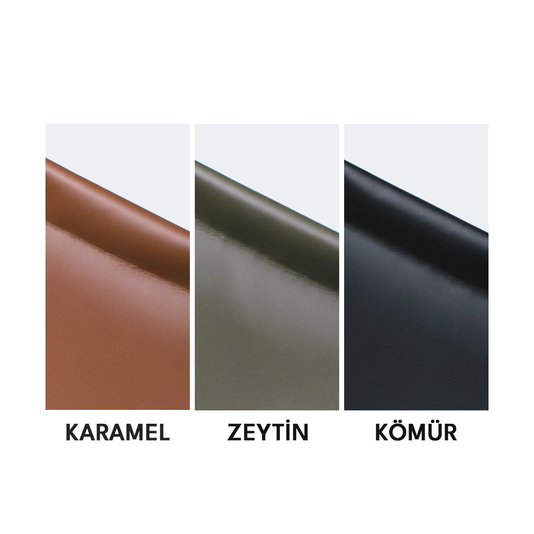 Kullanılan doğal deriler, özellikleri gereği çizik almaya ve renk değiştirmeye elverişlidir. Aynı şekilde pirinç ürünler de kullandıkça kararmaya ve patina almaya başlayacaktır. Bunlar doğal malzemelerden beklenen özelliklerdir, deformasyon değildir. Bakım bilgileri blog sayfamızda yer almaktadır.
