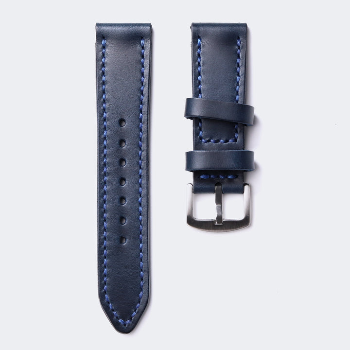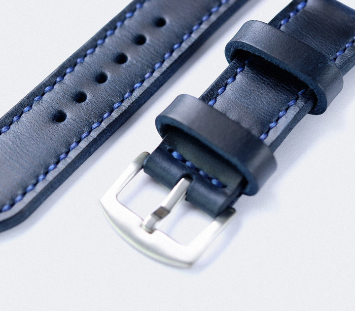 Çift Katlı Deri Saat Kayışı - Indigo Mavi