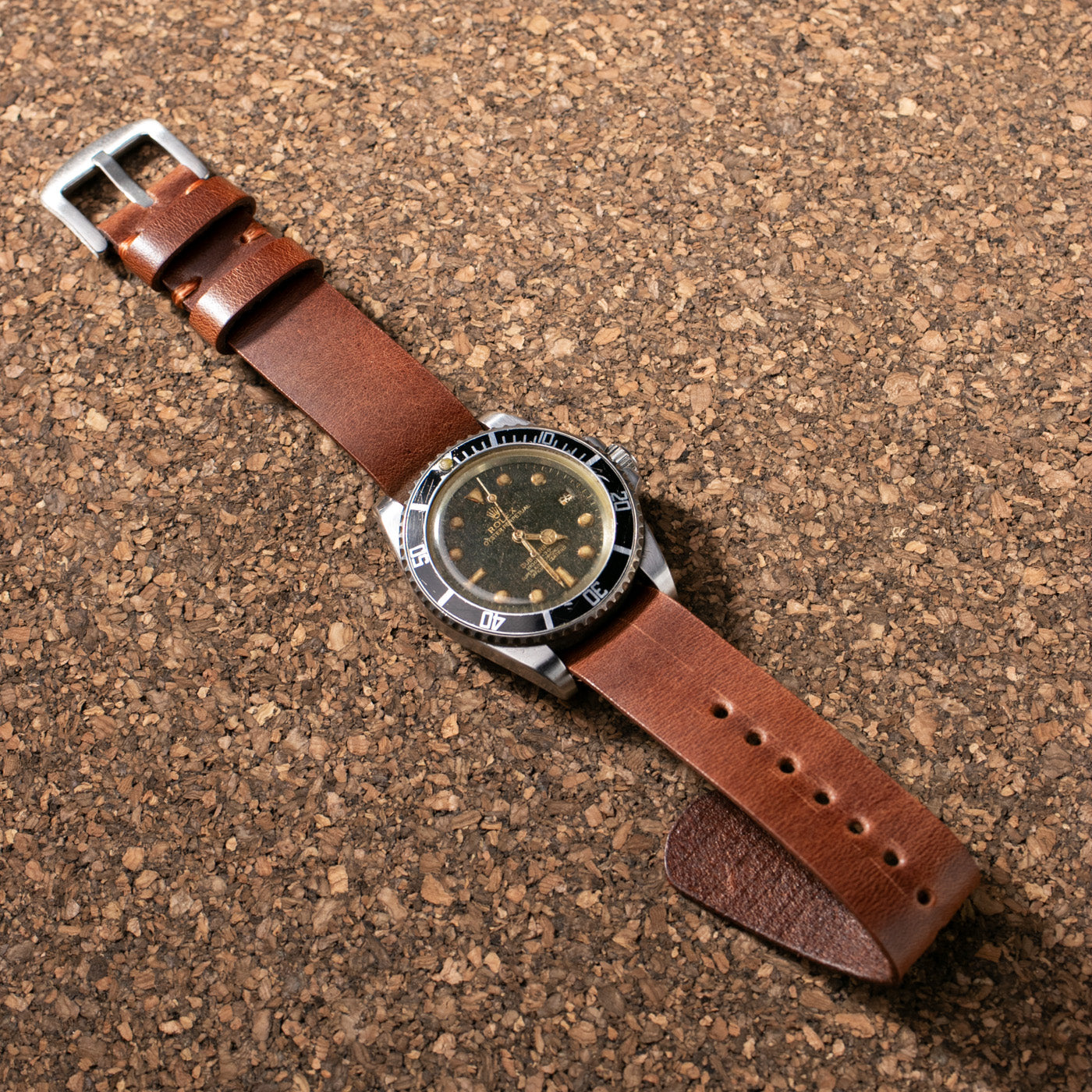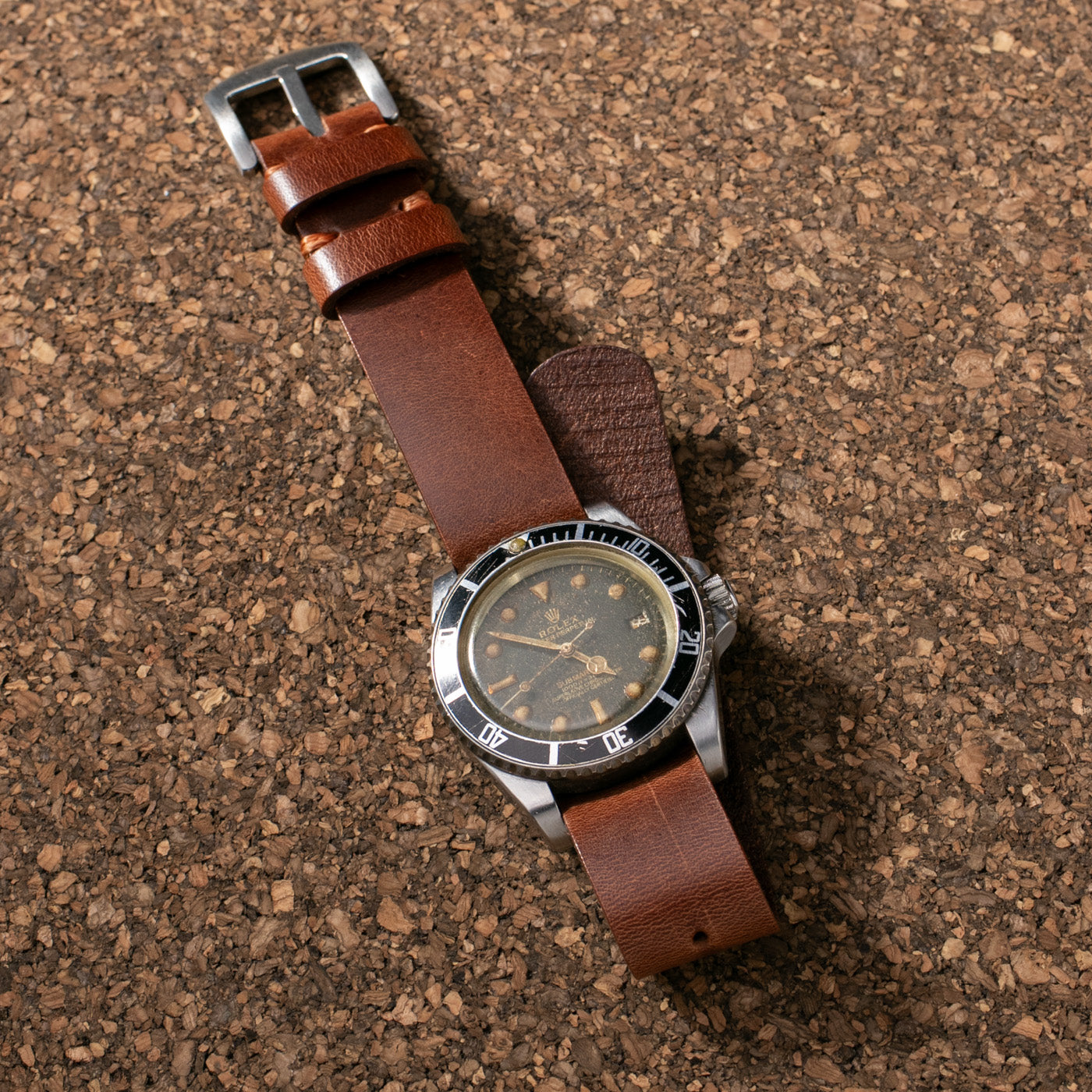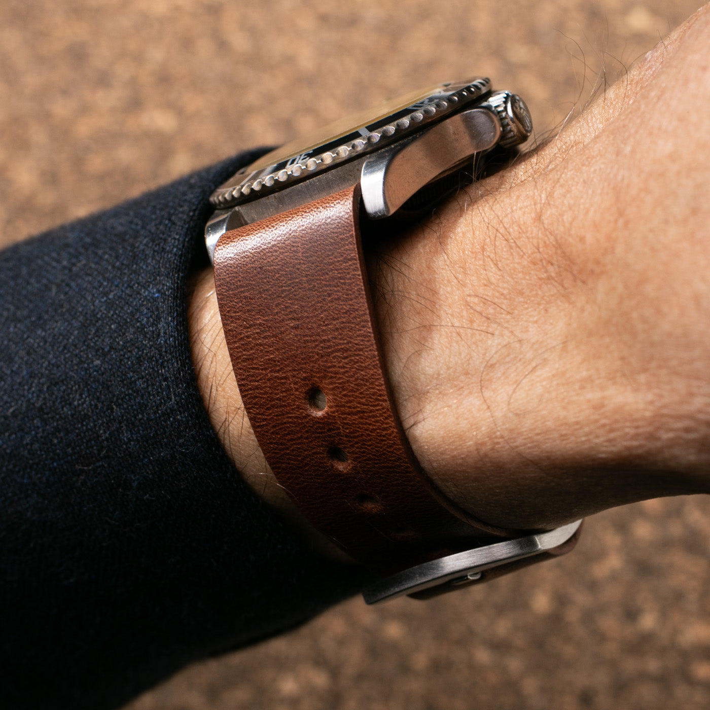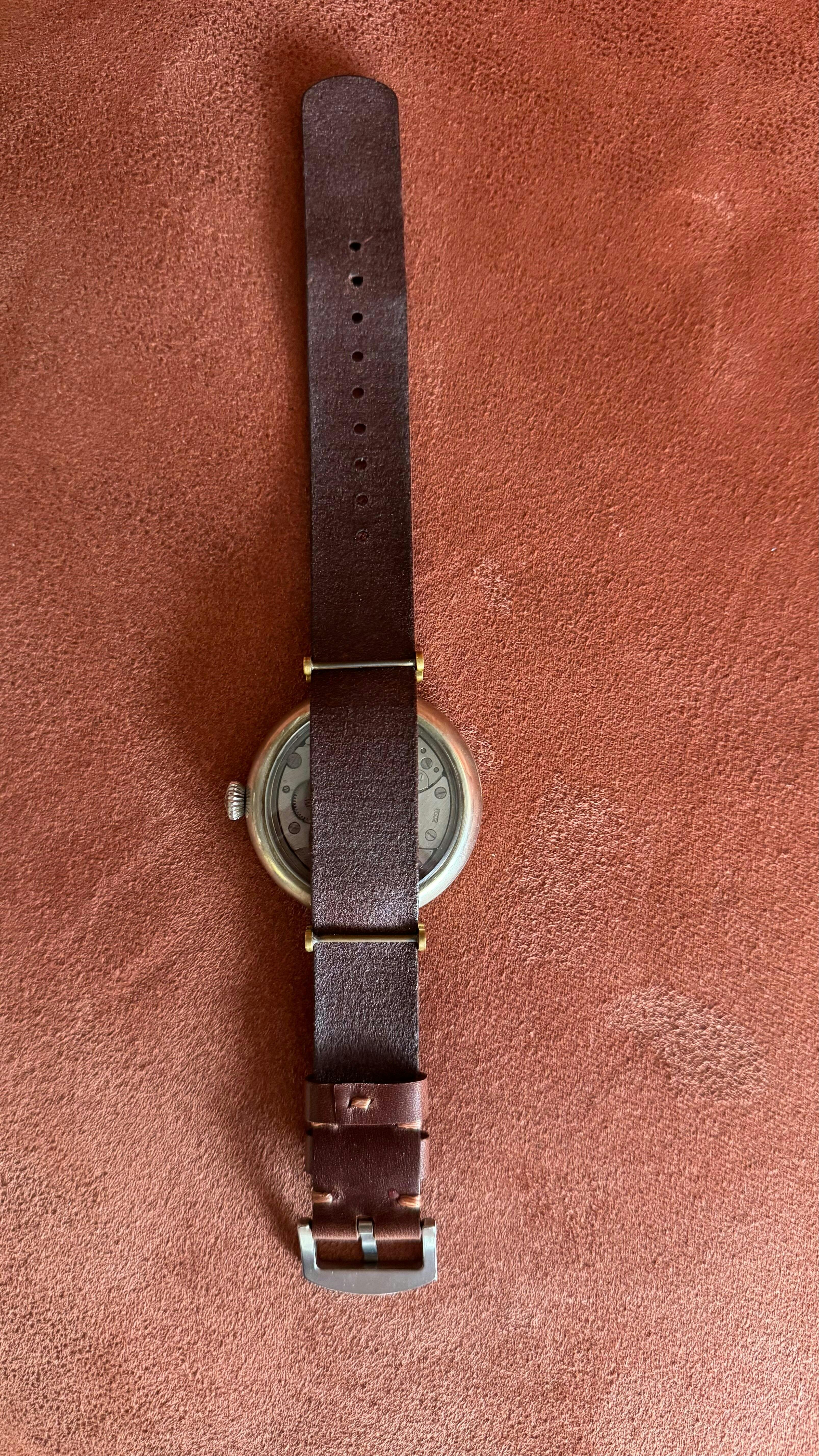 Tek parça deriden hazırlanan Nato saat kordonu.