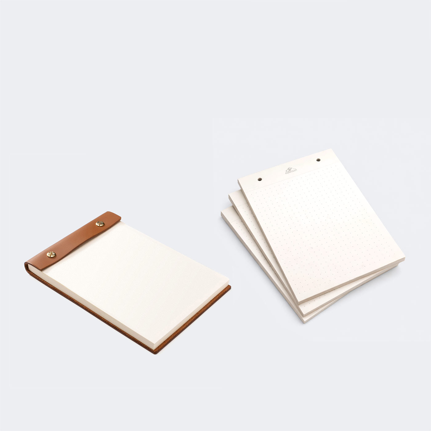 A6 ölçülerindeki deri bloknot günlük notlarınızı, karalamalarınızı ve fikirlerinizi aktarmak için mükemmeldir. Sökülüp takılabilen pirinç vidaları sayesinde refill bloğunu kolayca değiştirebilirsiniz.