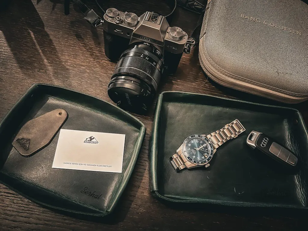 Kutu açılışını daha özel bir seremoni haline getirin. Ahşap kutunun sürgülü kapağını çekerek içindeki el yapımı harika deri ürünlere ulaşın.