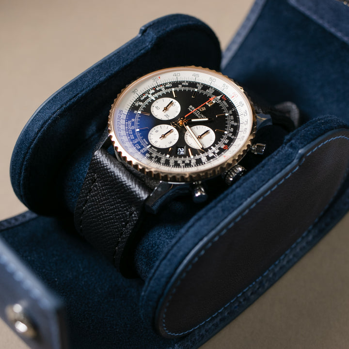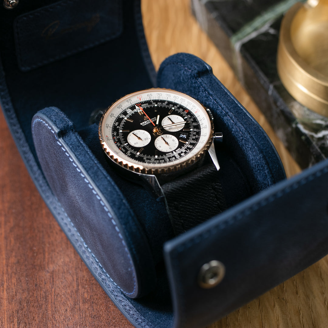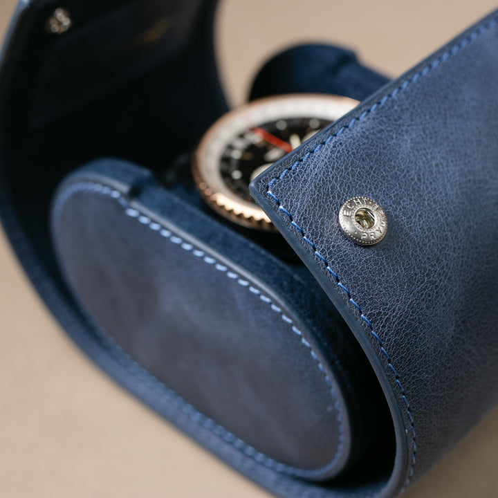 Tekli Deri Saat Kutusu - Mavi - Watch Roll