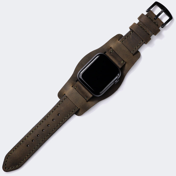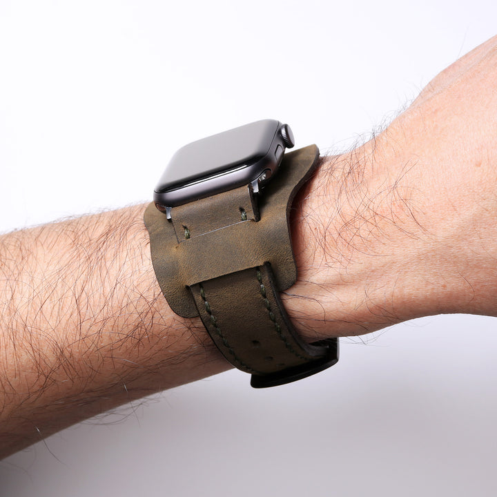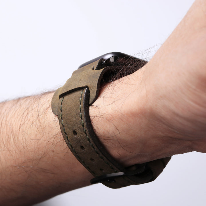 Bund Strap - Çift Kat Deri Apple Watch Kayışı - Antik Yeşil