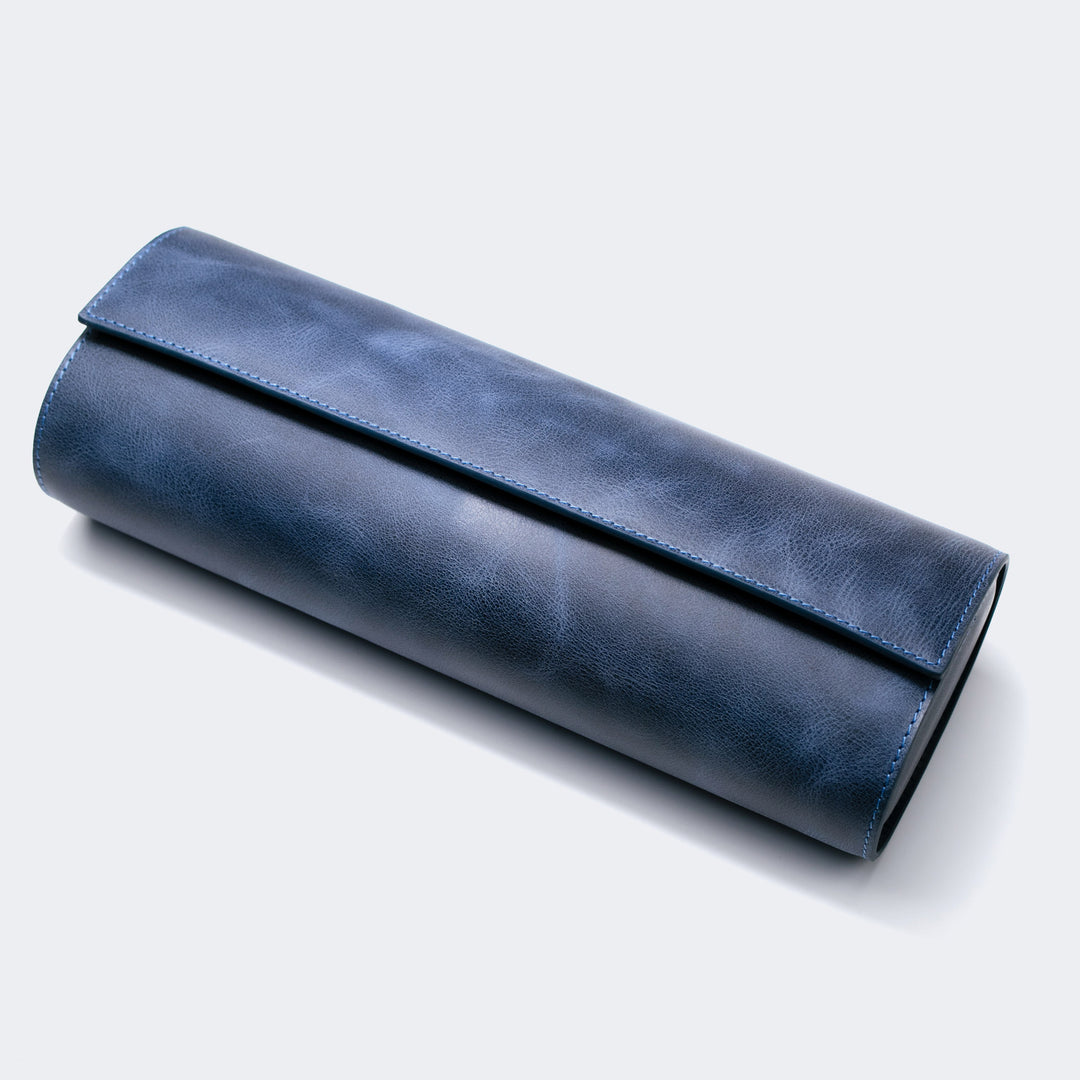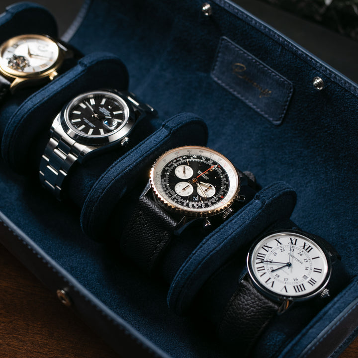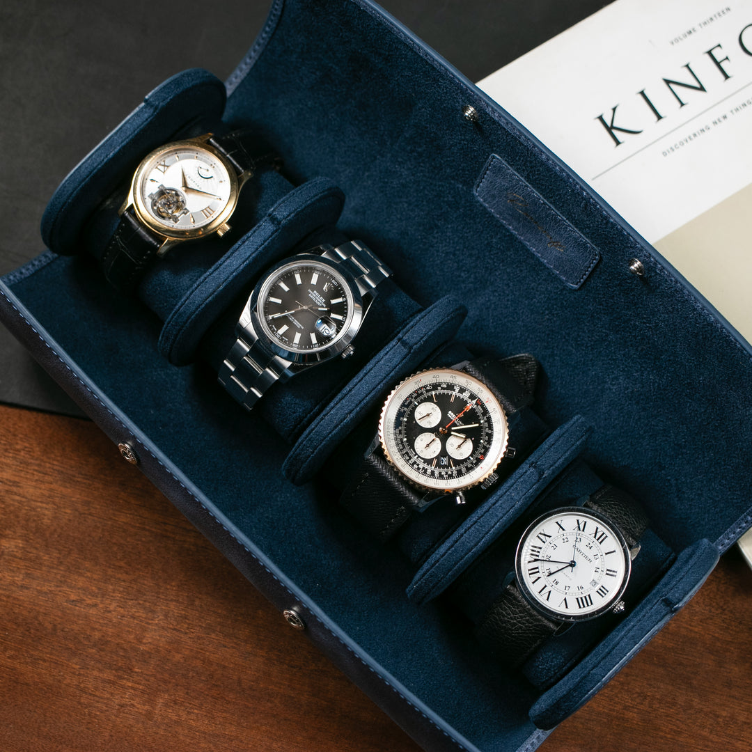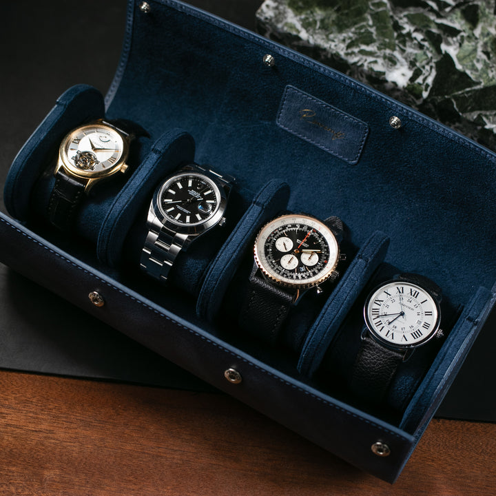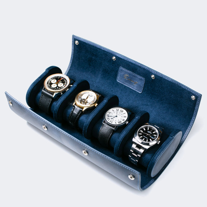 Dörtlü Deri Saat Kutusu - Mavi - Watch Roll