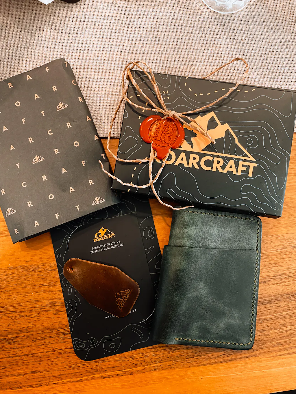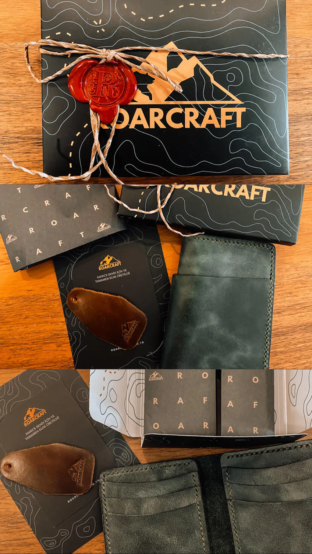 Kutu açılışını daha özel bir seremoni haline getirin. Ahşap kutunun sürgülü kapağını çekerek içindeki el yapımı harika deri ürünlere ulaşın.