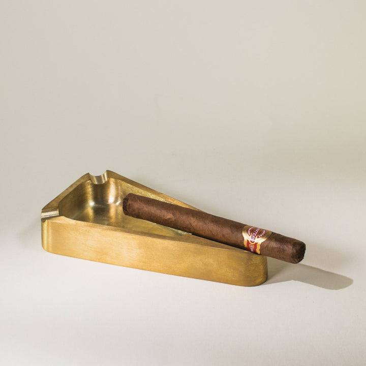 Som pirinçten yapılmış olan bu küllük, aynı anda birkaç sigarayı tutacak şekilde tasarlanmıştır.